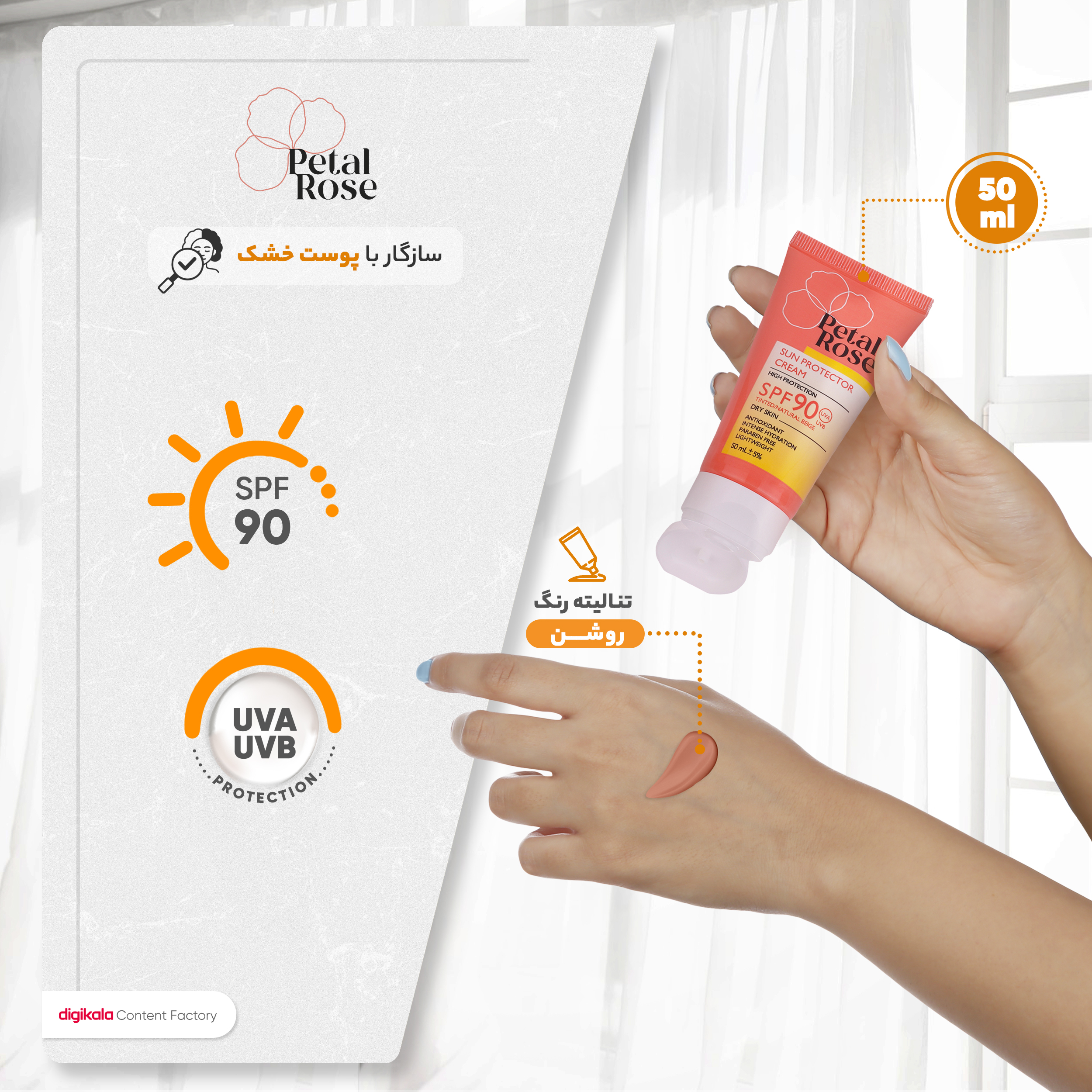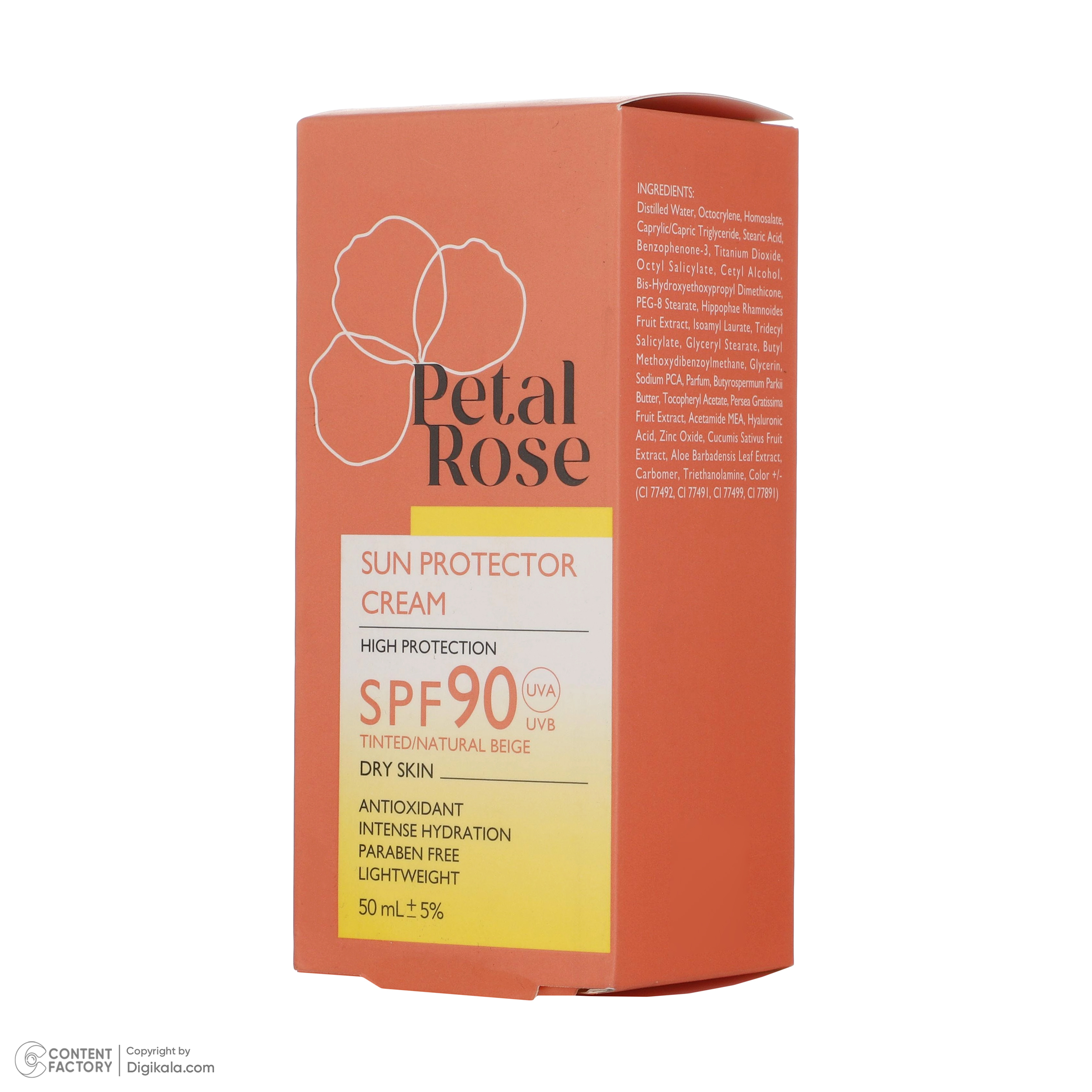 کرم ضد آفتاب رنگی پتال رز SPF 90 مدل ۰۱ مناسب پوستهای خشک حجم ۵۰ میلیلیتر