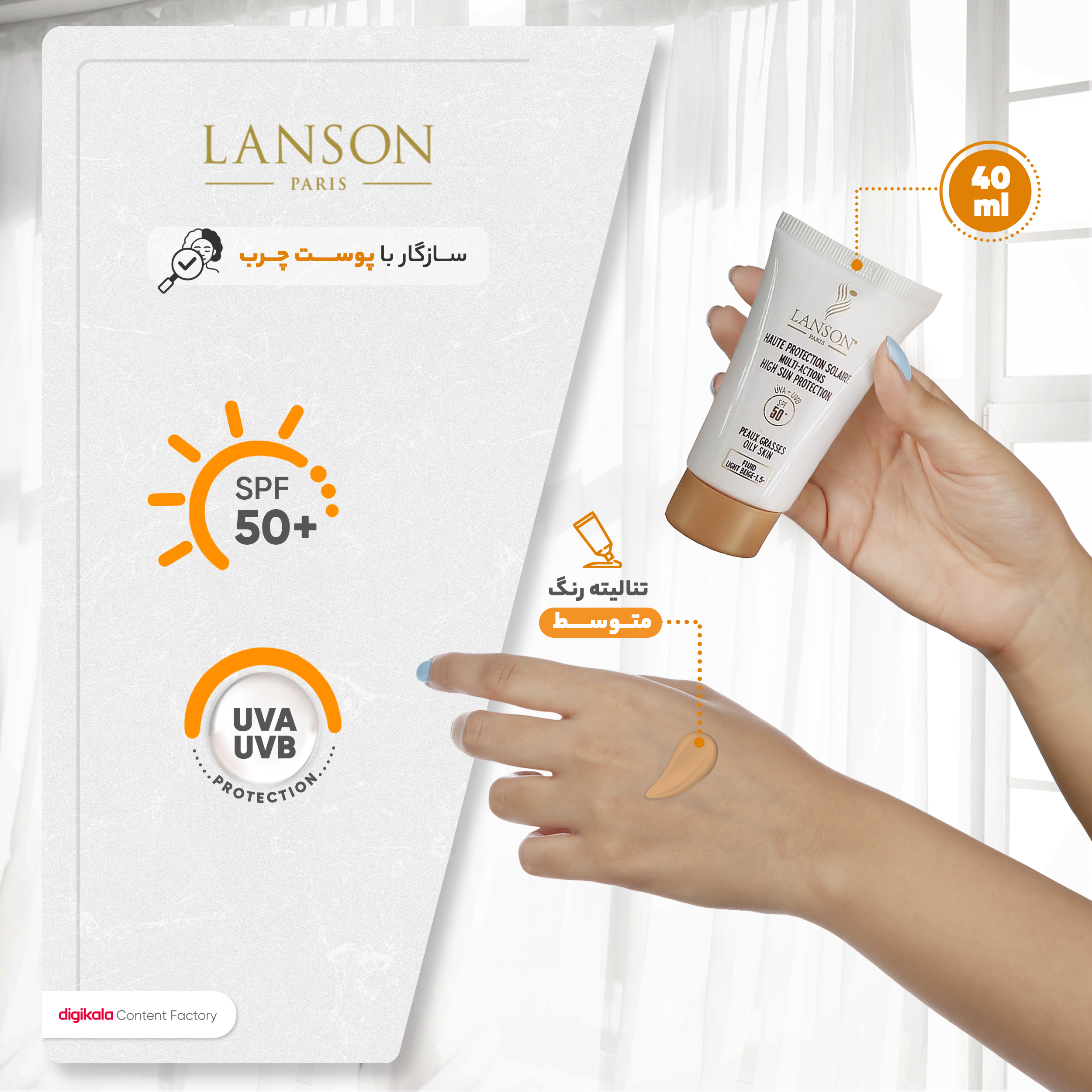 کرم ضد آفتاب لانسون، با SPF 50 و در حجم ۴۰ میلی‌لیتر، یک انتخاب ایده‌آل برای محافظت از پوست در برابر اشعه‌های مضر خورشید است. این محصول بی‌رنگ و بدون ایجاد جلوه‌ی اضافی، مخصوص استفاده بر روی صورت طراحی شده و با ترکیبات پیشرفته‌ای که دارد، به طور خاص برای پوست‌های چرب مناسب است. با تأمین حفاظت کامل در برابر اشعه‌های UVA و UVB، این کرم ضد آفتاب برای بانوان و آقایان در تمامی شرایط مناسب است. اگر به دنبال یک کرم ضد آفتاب مؤثر، با ماندگاری مناسب و بدون ایجاد سنگینی بر روی پوست هستید، لانسون گزینه‌ای ایده‌آل است.