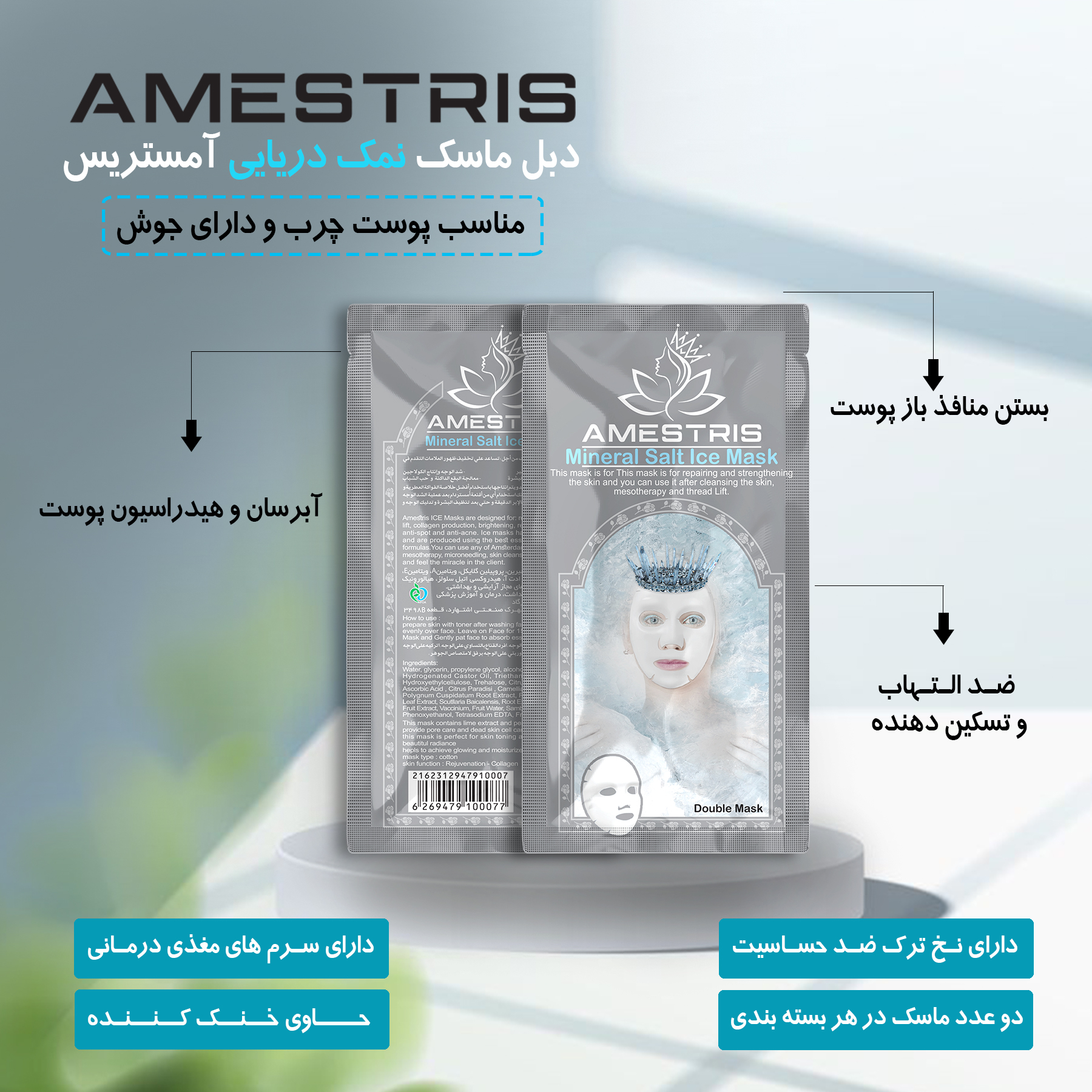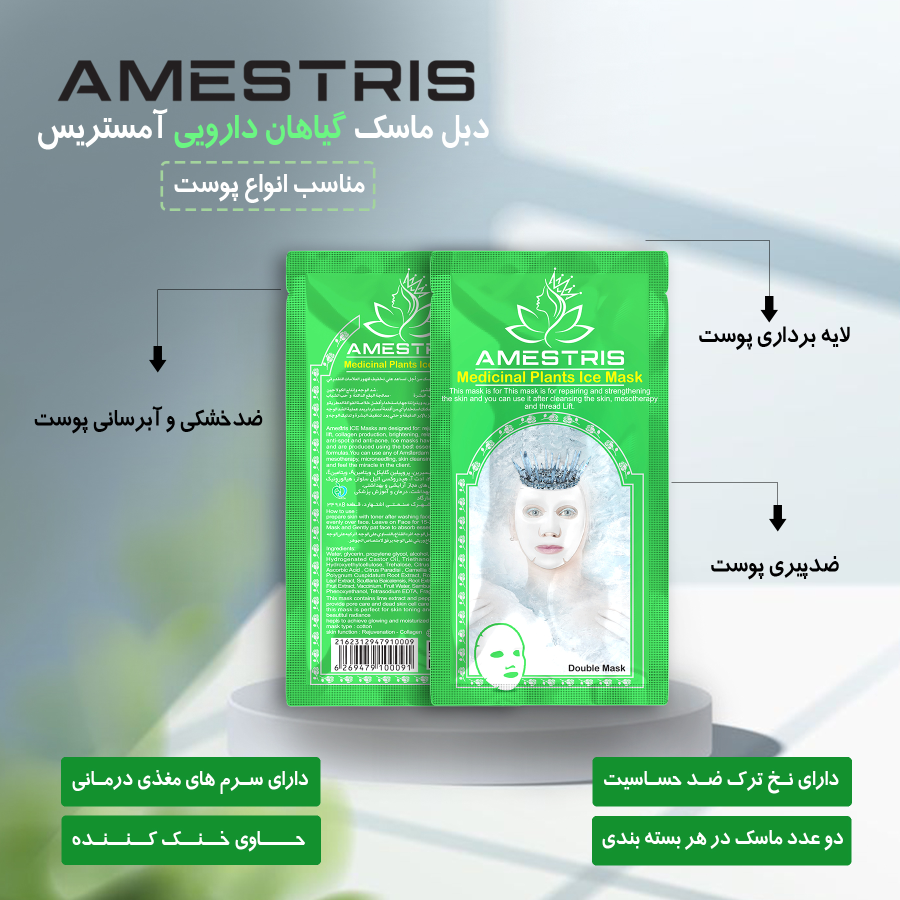 پک روشن کننده و ضدلک پوست دارای 3 بسته ماسک دبل آیس آمستریس با مدل های مزو ، گیاهان دارویی ، نمک دریایی می باشد .